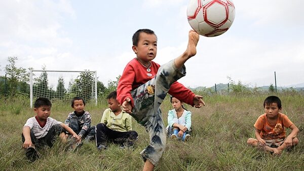 山头建起标准化篮球场,毛草坪变成足球场。2022年,卡塔尔世界杯,红星村小孩子们踢球的画面还登上了赛场大屏,标题叫“微小学的足球梦”。