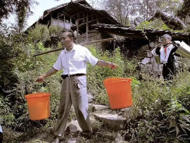 没有电,照明用煤油灯;没有自来水,要去四百米外的水井里挑,每天光挑水,冉兴国就要花将近两小时。
