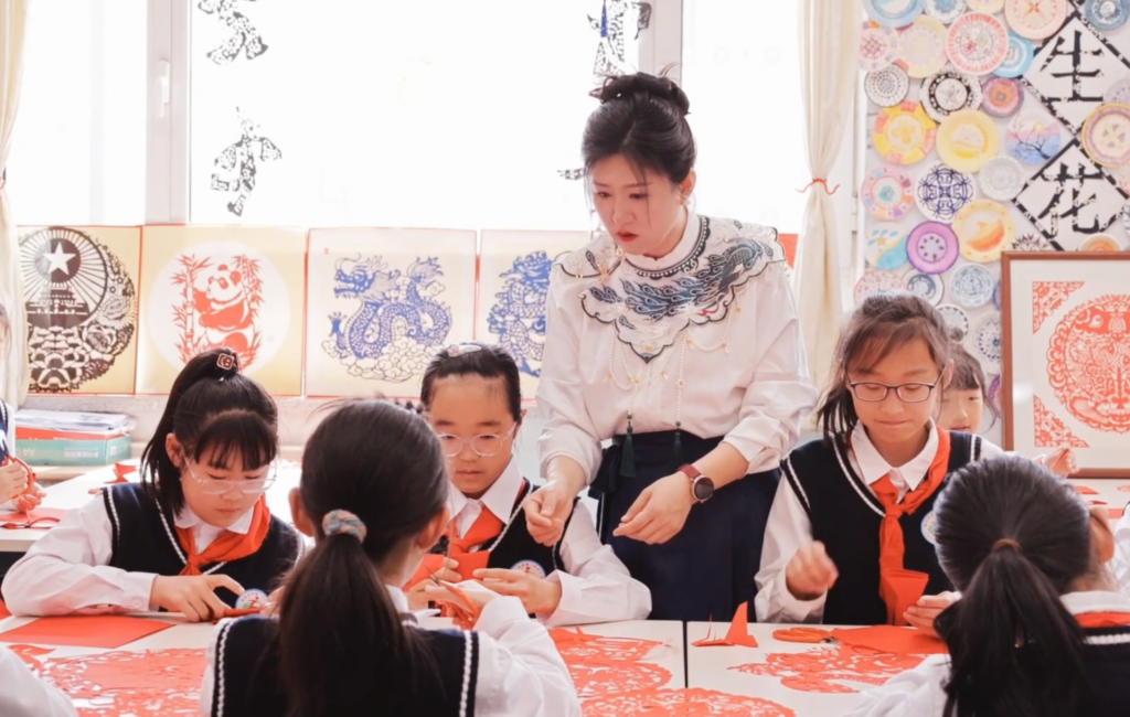 “幕后总指挥”是校长蔡万田,2022“乡村校长计划”的入选校长。他把剪纸非遗传承人请进校园,入选后有校长实践基金,他拿出一些给娃们当 “玩闹经费”:“非遗不是摆着看的,得让娃们摸得着、玩得嗨!”
